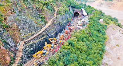 7月20日,宝成铁路水害抢险进入第八天,宝成铁路王家沱至乐素河间山体崩塌抢险工作仍在紧张有序进行,上山机械抢修便道顺利打通,大型机具已经上山开展清方减载作业。截至目前,中国铁路西安局集团有限公司已陆续组织1100余人、12台挖掘机和4台装载机在现场昼夜不间断进行抢修。图为7月16日傍晚拍摄的抢险现场。